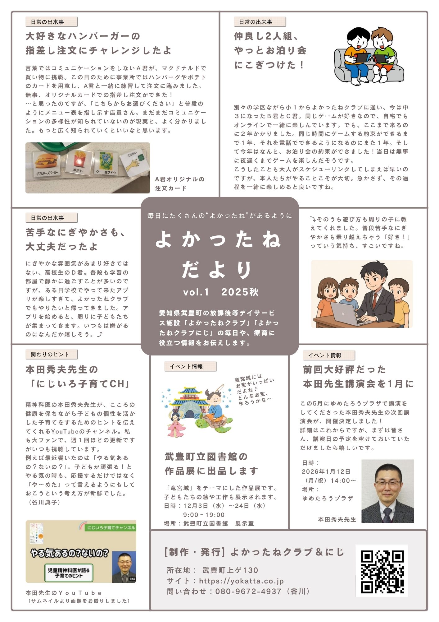 今回のニュースレターの制作は、話の聞き取りから提案、制作、完成まで、約6時間かかりました。言葉工房トムの定期訪問制作パック「コトバタントウ」のお客様なので、月3時間の訪問×2回で出来上がり、今後は季節に1度の発行を目指して、1回の訪問で作れるよう、ネタ探しと写真素材の準備までをしておいていただくという形になりました。これまでもずっとニュースレターを作りたいと思っていたものの、なかなか形にならなかったそうで、今回作ることができ、今後の制作にも目途が立って、喜んでいただけました♪